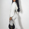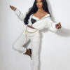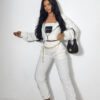Ten trzyczęściowy dres welurowy to totalny hit, który daje Ci mnóstwo możliwości stylizacji i niesamowitą wygodę. Miękki, lśniący materiał sprawia, że cały zestaw prezentuje się bardzo luksusowo i jest wyjątkowo przyjemny dla skóry. W komplecie znajdziesz luźną bluzę z kapturem, dopasowany top oraz spodnie na wygodnej gumie w pasie, które mają nogawki zakończone praktycznymi ściągaczami.
