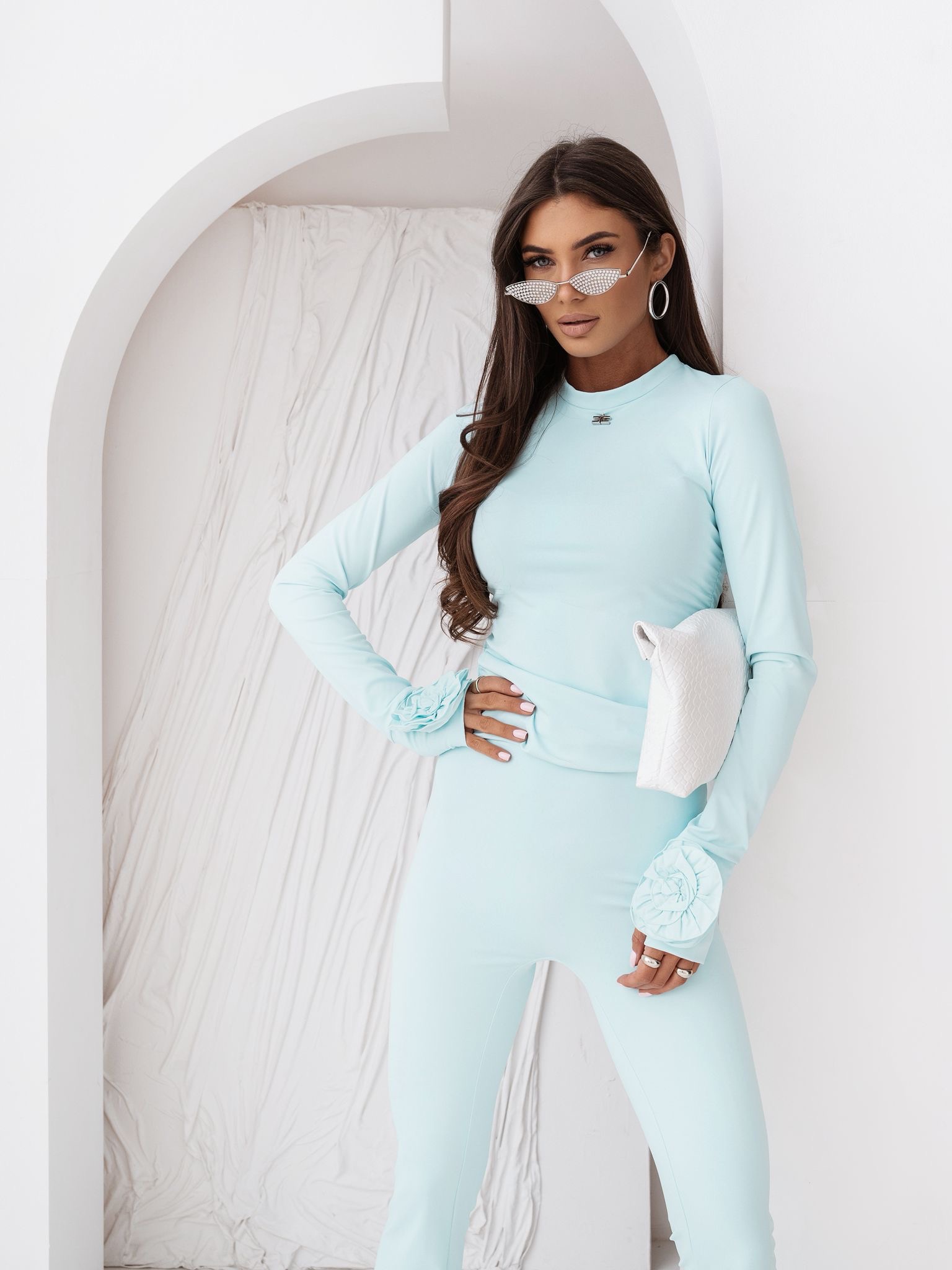 Zmysłowa klasyka w wydaniu Lavestiono. Bluzka wykonana z wysokiej jakości, elastycznej lycry, która perfekcyjnie przylega do ciała, tworząc efekt „drugiej skóry”. Ten model to połączenie nowoczesnego minimalizmu z romantycznym detalem,efektowne, materiałowe róże przy rekawie przełamują prostotę fasonu, nadając mu luksusowego charakteru. Idealna dla kobiet, które cenią wygodę bez kompromisów w kwestii stylu.