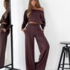 Odkryj komplet, który łączy w sobie niesamowitą miękkość oraz nowoczesny design idealny na każdą okazję. Zestaw wykonano z najwyższej jakości materiału typu,który jest niezwykle przyjemny dla skóry oraz perfekcyjnie układa się na sylwetce. Bluzka pozwala na klasyczne noszenie lub zmysłowe opuszczenie na ramię, a przedłużone mankiety z subtelnym haftem nadają całości unikalnego charakteru. Dzięki gumce ze stoperem na dole bluzki oraz elastycznemu pasowi w spodniach z szeroką nogawką, zestaw gwarantuje pełną swobodę ruchów oraz doskonały wygląd w podróży lub na spacerze.