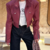 Kurtka Skórzana Royal Ze Stójką Malinowa