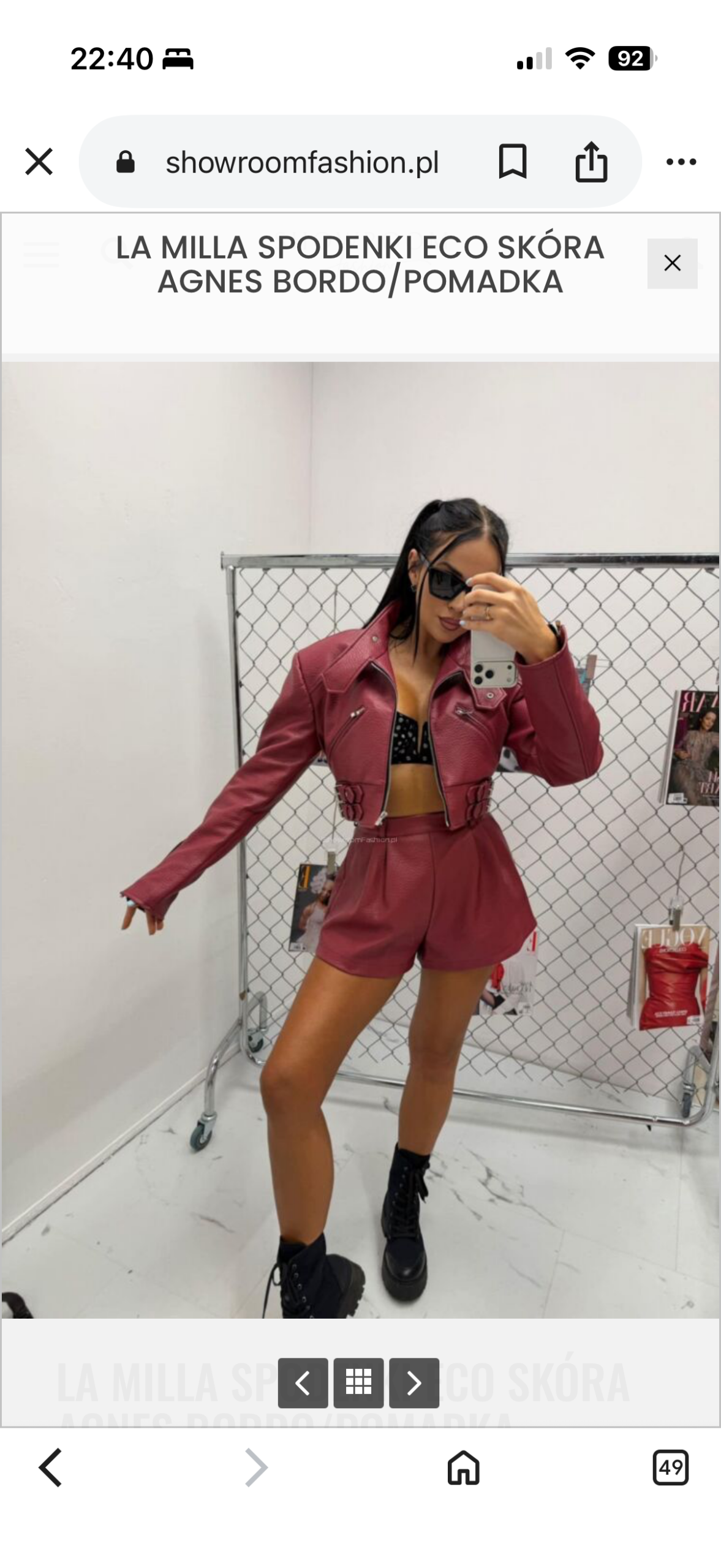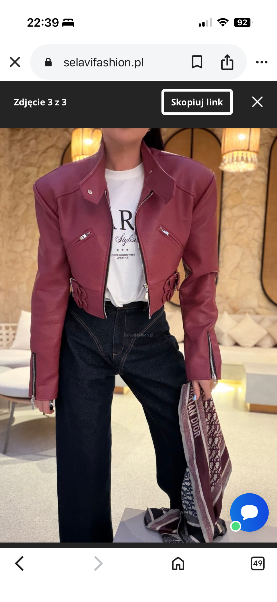 To krótka ramoneska z charakterem. Została wykonana z wysokiej jakości ekoskóry. Fason,który świetnie podkreśla sylwetkę. Modna stójka na napę i ozdobne klamry w talii dodają jej stylu. To produkt polski, dopracowany w każdym detalu. Idealna baza do Twoich ulubionych stylizacji.