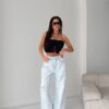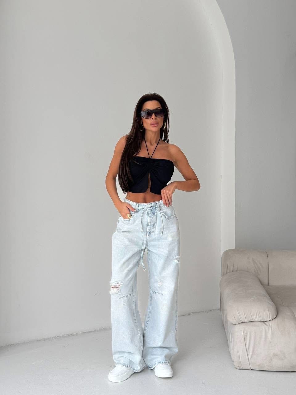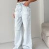 Te jasne jeansy o swobodnym fasonie to idealne zestawienie komfortu oraz miejskiego szyku, które gwarantuje pełną wygodę oraz podkreśla Twój indywidualny styl. Wykonano je z wysokiej jakości denimu zdobionego modnymi przetarciami oraz oryginalnym sznurkiem w pasie pozwalającym na doskonałe dopasowanie do sylwetki. Szeroka nogawka nadaje całości nowoczesnego wyrazu, który sprawdzi się w zestawieniach codziennych lub typowo streetwearowych. To model stworzony do częstego noszenia, który zapewnia atrakcyjny wygląd oraz swobodę w każdej sytuacji.