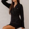 Ta elegancka sukienka o fasonie marynarki to propozycja idealna dla kobiet ceniących klasykę w nowoczesnym wydaniu. Charakteryzuje się ona dopasowanym krojem, który pięknie podkreśla talię, oraz stylowymi detalami.