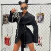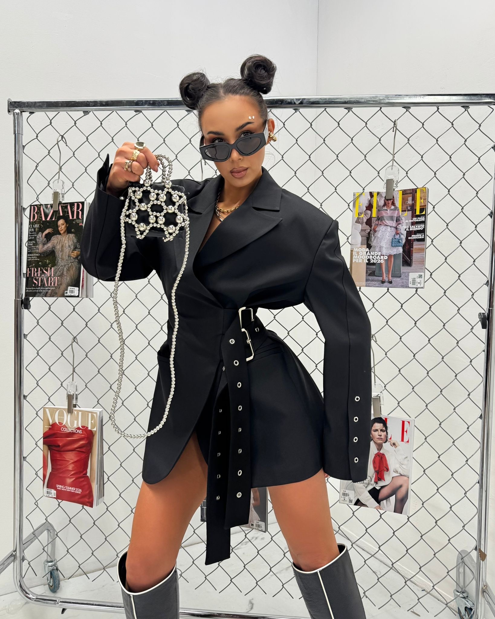Szukasz marynarko – sukienki która łączy elegancję z nowoczesnym stylem? Ten model to strzał w dziesiątkę. Uszyta z porządnego materiału o ciekawej strukturze, świetnie leży i nie traci fasonu. Dołączony pasek z metalową klamrą pozwoli Ci idealnie podkreślić talię, a subtelne nity na rękawach dodają całości modowego pazura. To idealna baza do pracy czy na spotkanie, w której zawsze będziesz wyglądać profesjonalnie i kobieco.