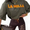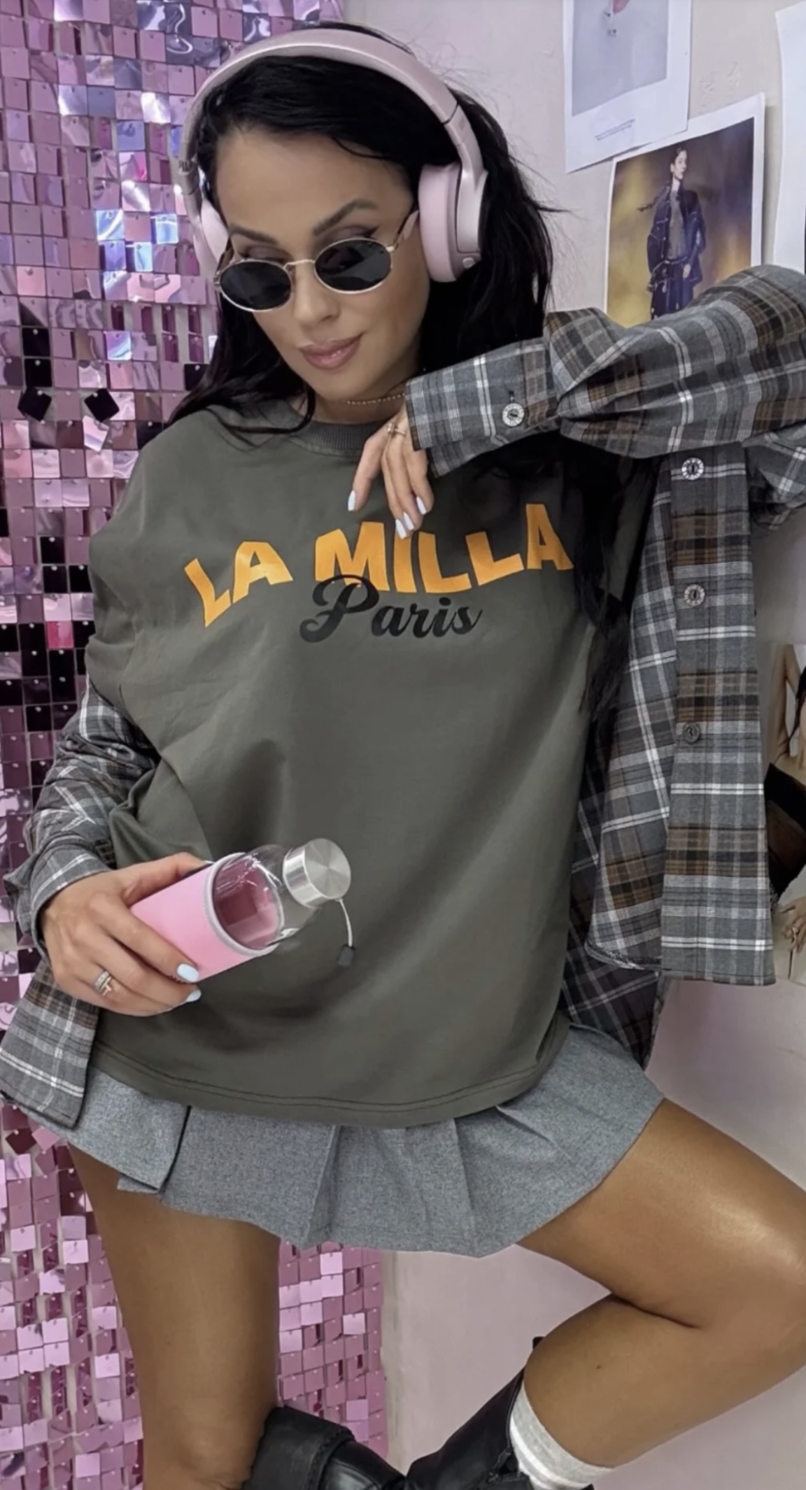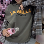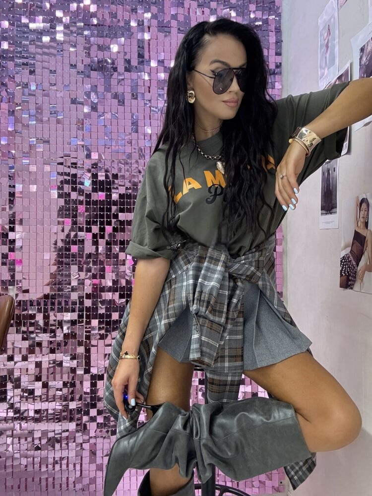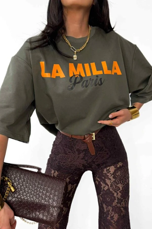 Luźny, oversizowy krój z poduszkami na ramionach i stylowym logo na przodzie. Idealna baza, która łączy totalną swobodę z modowym lookiem.